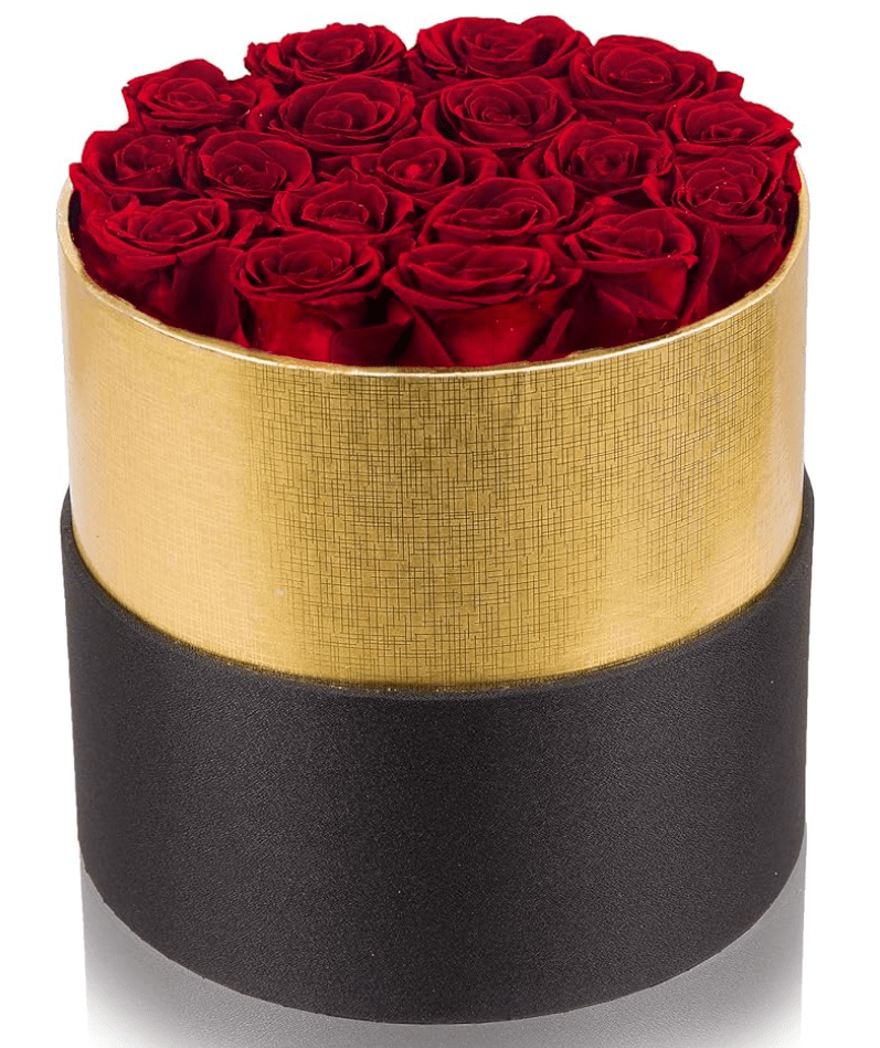 Preserved Roses are a super popular gift, however often cost over $200. The set shown below costs around $55, comes in 10 colors, and lasts up to 3 years.