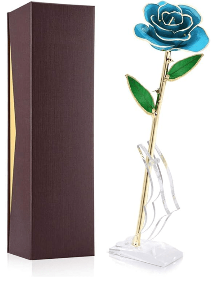 This 24K Gold Dipped Rose lasts forever and costs approximately $37. The rose is available in 16 diverse colors and styles, making it an ideal collectible gift suitable for life’s many milestones.